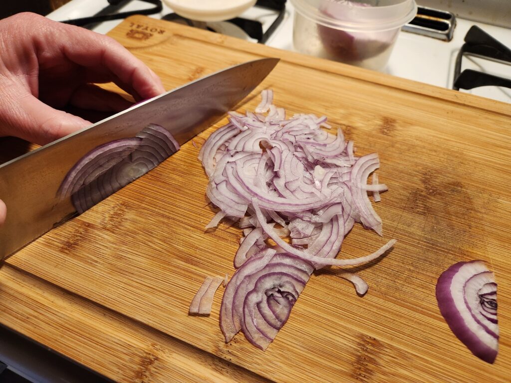 Next slice the red onion VERY thin.