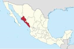 “Sinaloa is located in northwest Mexico and is bordered by the states of Sonora to the northwest, Chihuahua to the north, Durango to the east, and Nayarit to the southeast. To the west, Sinaloa faces Baja California Sur, across the Gulf of California. Its natural geography is divided by the Sierra Madre Occidental, fertile river valleys, and a broad coastal plain along the Gulf of California. The state covers an area of 58,328 square kilometers (22,521 sq mi) and includes the islands of Palmito Verde, Palmito de la Virgen, Altamura, Santa María, Saliaca, Macapule, and San Ignacio.