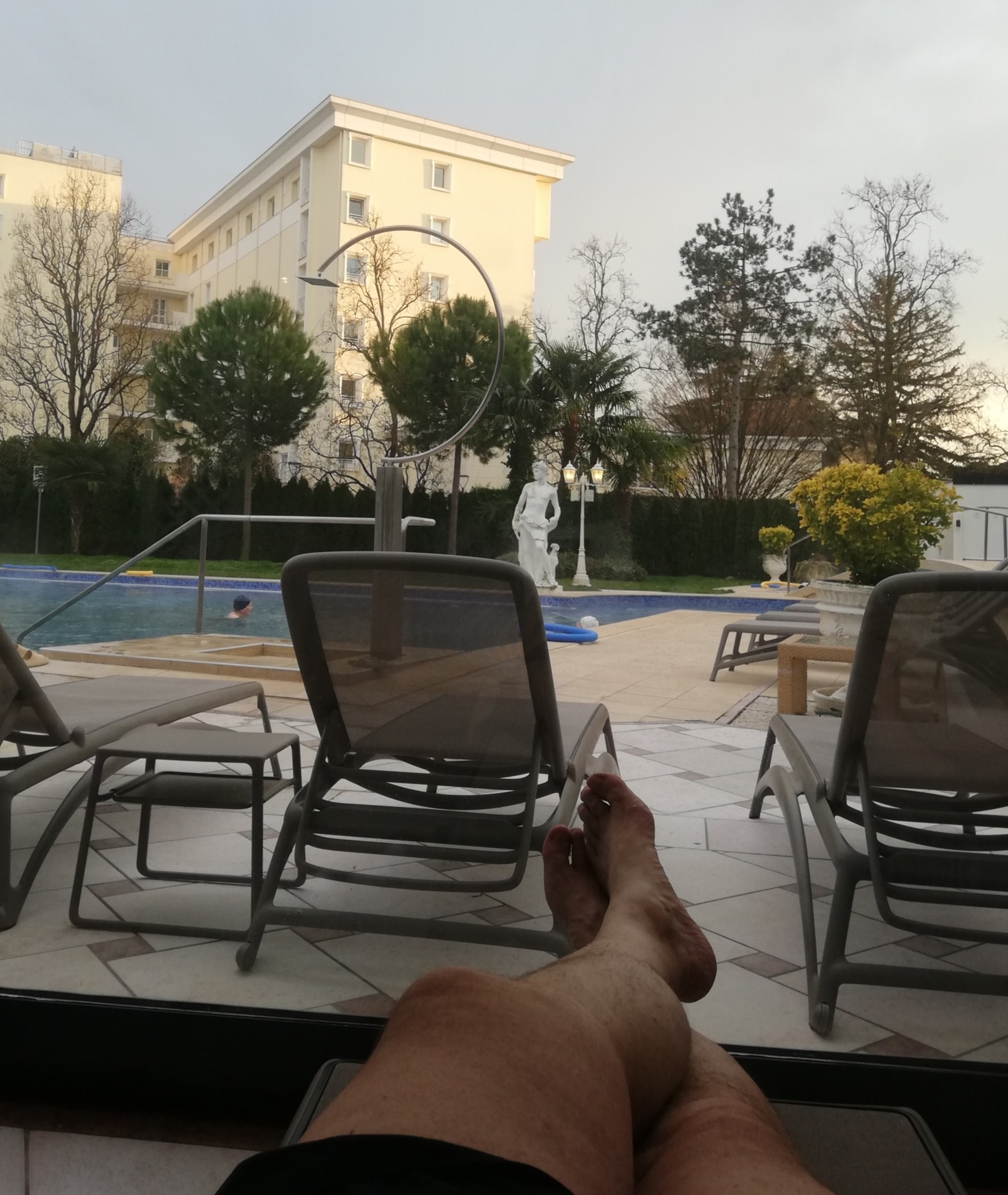 It wasn’t that nice of a day. There were enough clouds that I needed to put on my robe after swimming laps lest I get a little chilly.