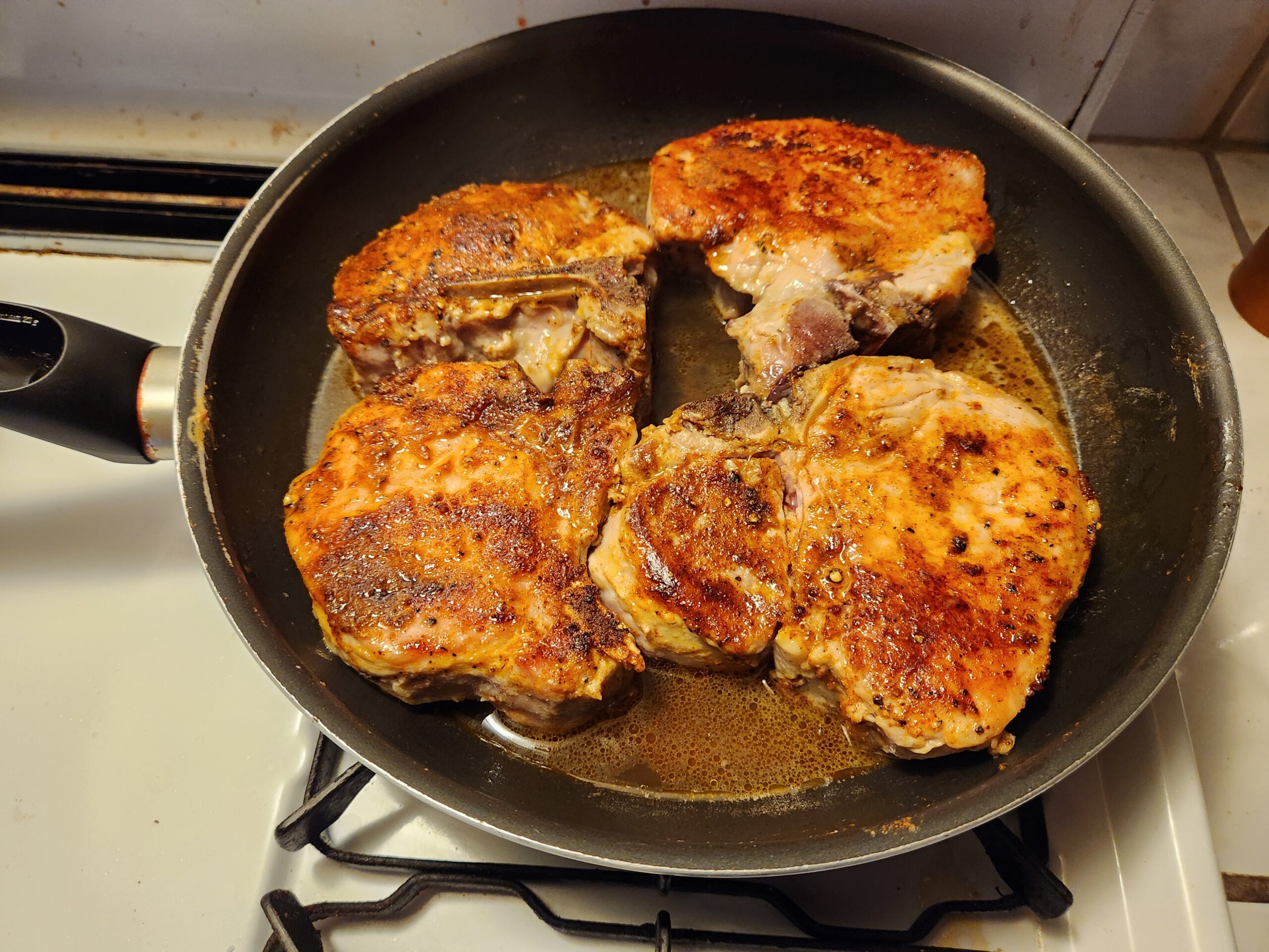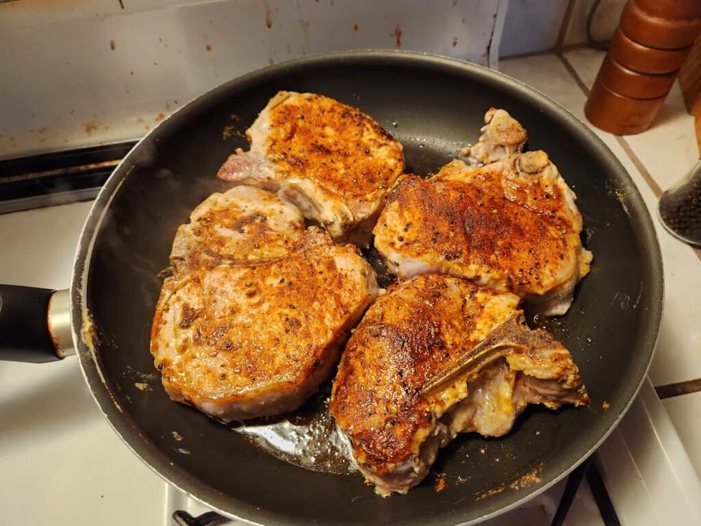 The recipe we’re doing today got my attention because it is literally titled “The Best Juicy Skillet Pork Chops.” Motherfucker who calls something the best juiciest pork chops is swinging a hefty sack of huevos. That’s one bold-ass statement, especially to somebody who digs the chops as much as I do.