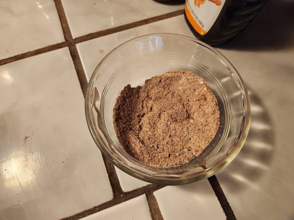You can adlib the fuck out of this recipe by choosing your own rub ingredients. You could go Creole, Asian style, Mexican style you name it. The flour is the key here to get the correct texture for the coating. The spices? Make them your own! I’ve been digging the smoked Spanish paprika lately so there you are.