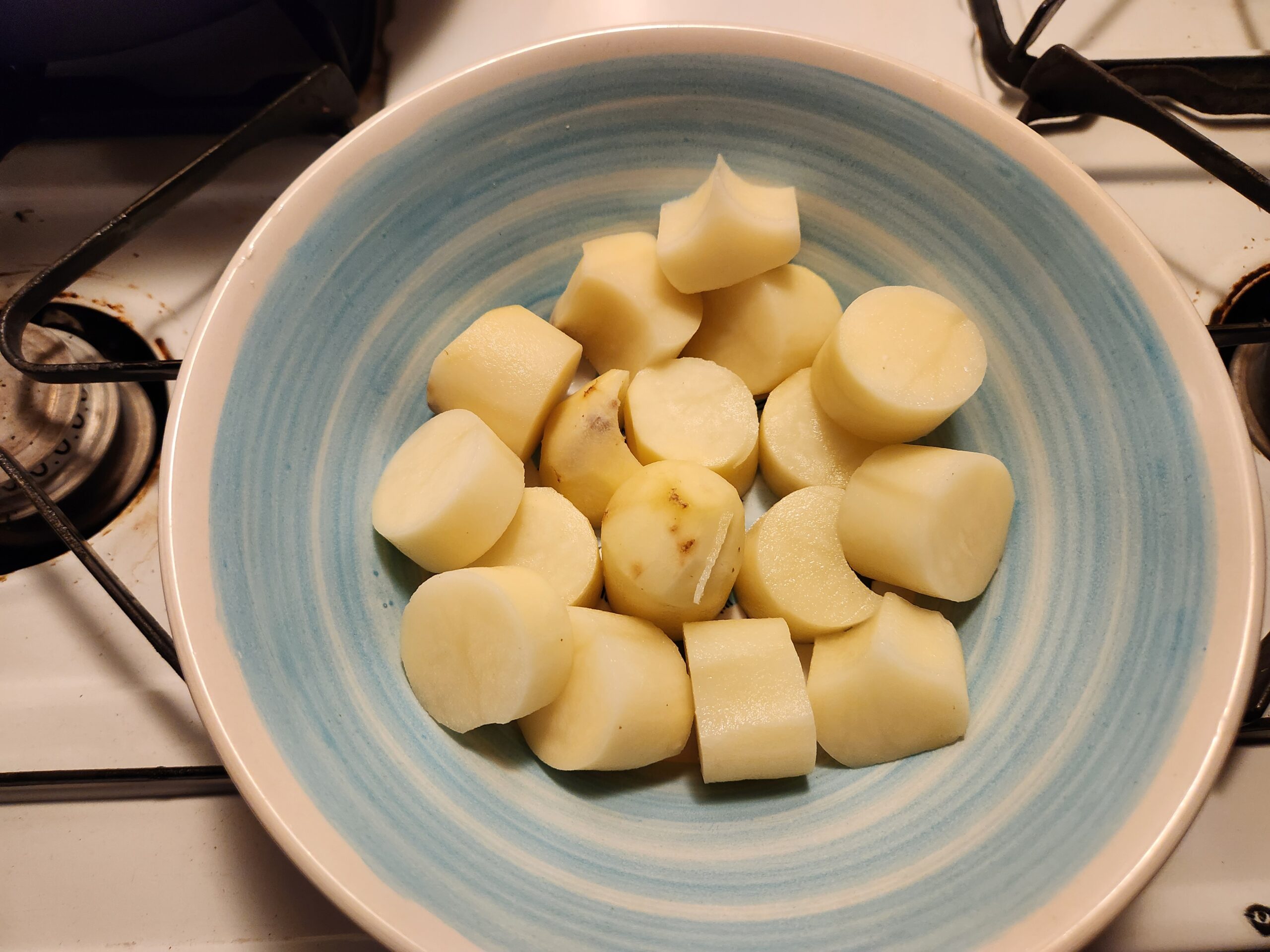 2-4 large floury potatoes, peeled. Russet potatoes are perfect for this