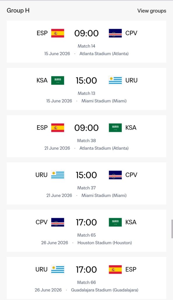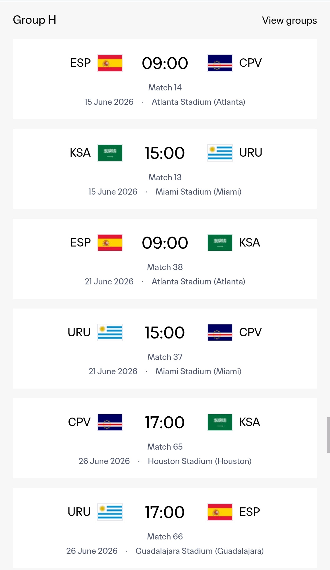 - Uruguay determining the third place team by virtue of the goal difference in their matches against Saudi Arabia and Cabo Verde.