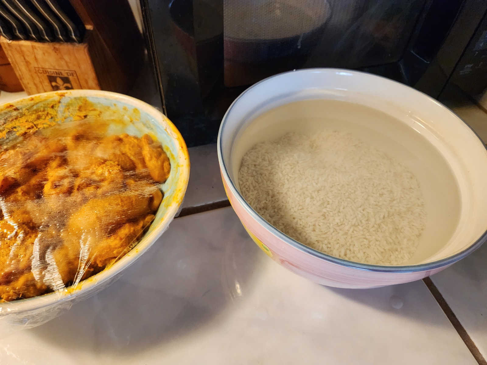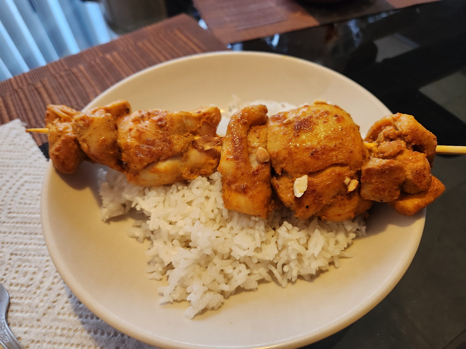 You’ll notice the rice interlude is happening while the chicken skewers are coming up to room temperature.