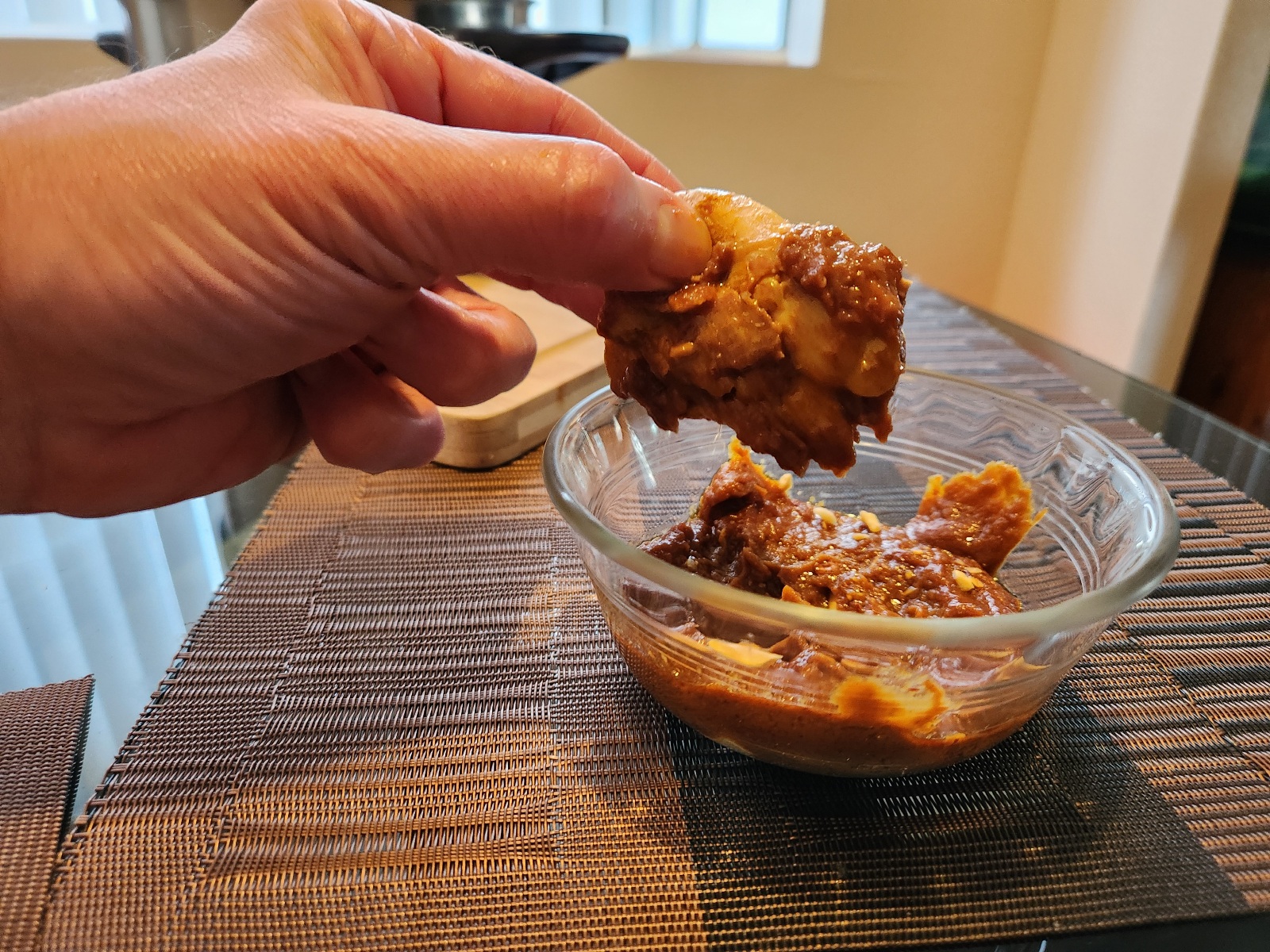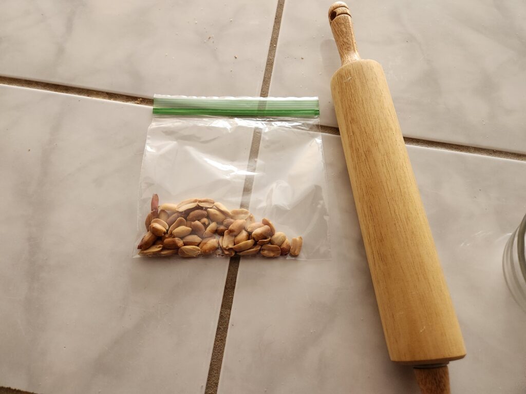 I thought some crushed roasted peanuts would make a nice garnish for both the chicken and the peanut sauce.