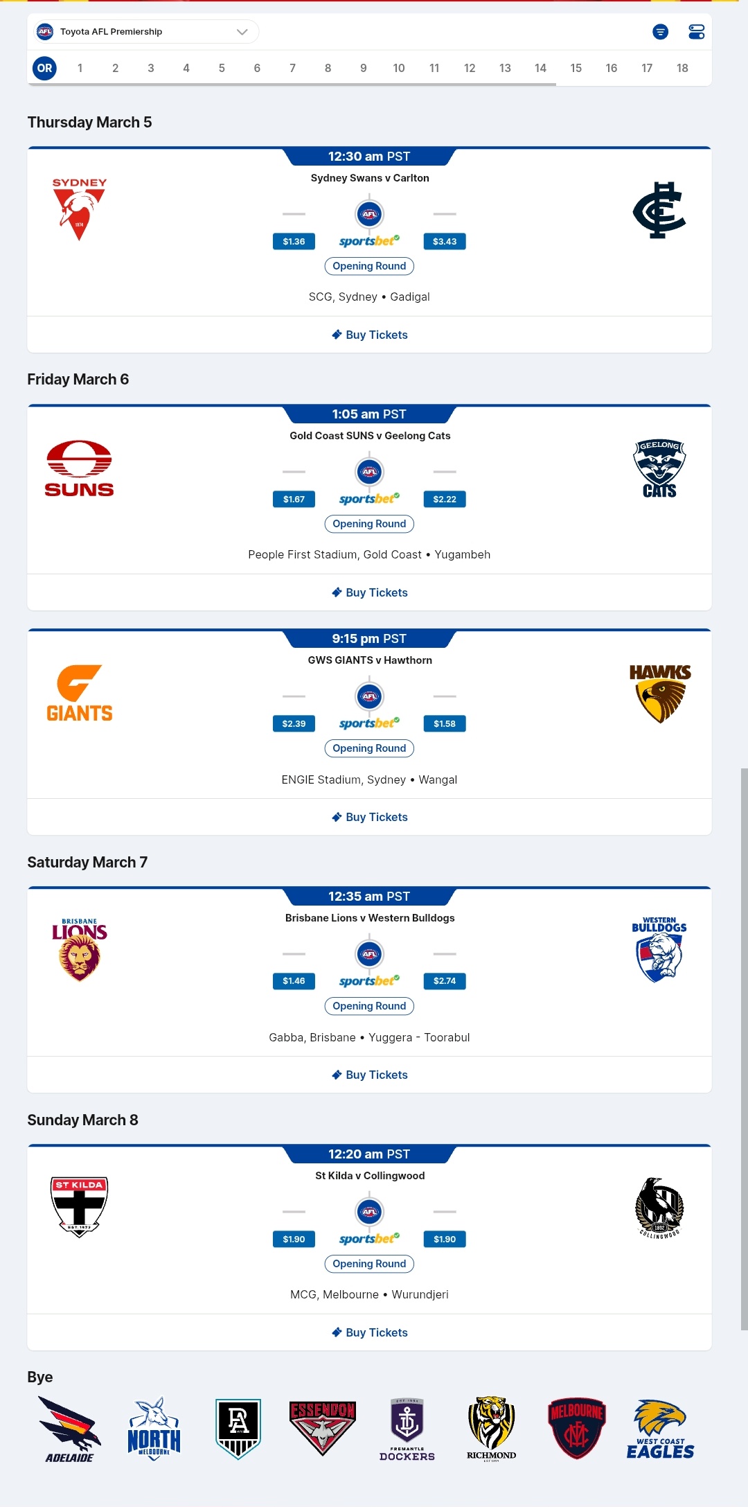 If you are a member of an AFL club or you got a Watch AFL membership, you should be able to watch every AFL and AFLW game, including replays. Game times vary between Australian afternoon and evening, which actually makes it easier for us in North America to watch as the games can be seeing in the evenings on Pacific Time and early mornings on Eastern time.