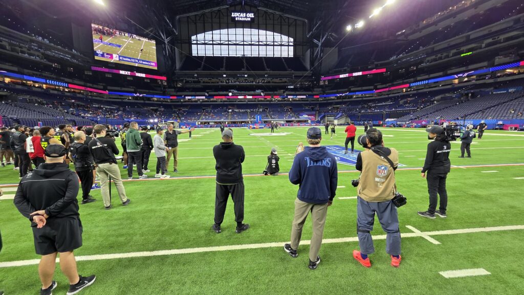 I’m sitting in the freezing kitchenette of an airbnb in downtown Indianapolis at 6am because I am a very wise decision-maker. I decided that, after the super long first day covering the combine, I’d rather go to bed ‘early’ (after midnight) so I could get up ‘early’ (530am, certifiably early) to write up what the experience was like and share some of the footage I’d captured. As little as I wanted to get up, I really do want to share before things get hectic again. Now that I’m done crying and the coffee is ready, here’s what I have to report!