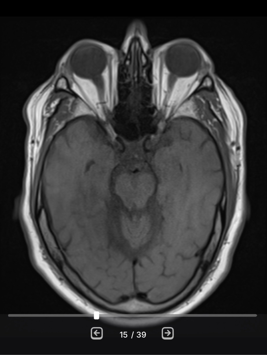 (The image is like looking down on the top of my head. This slice includes my eyeballs at top and my brain or what’s left of it)