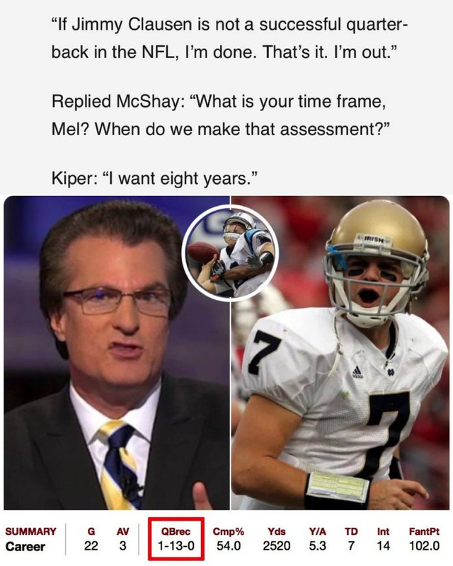 Not a draft pick, but I just want to remind everyone what a lying cock Weasley mel kiper is