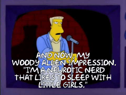 Haven’t seen Woody Allen picked yet, so I’ll help myself to some more low hanging fruit.