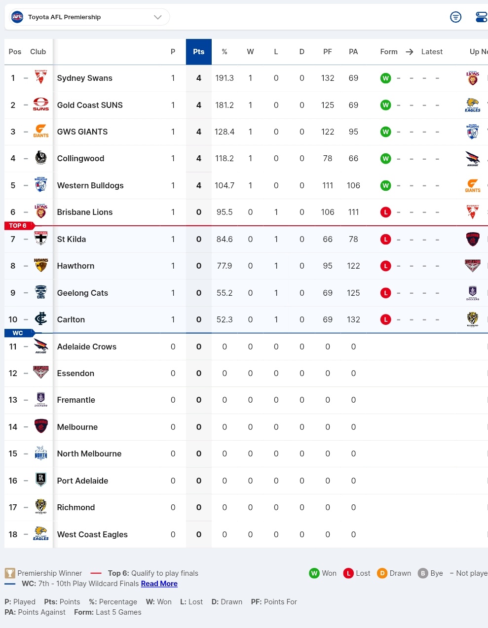 The AFL Ladder