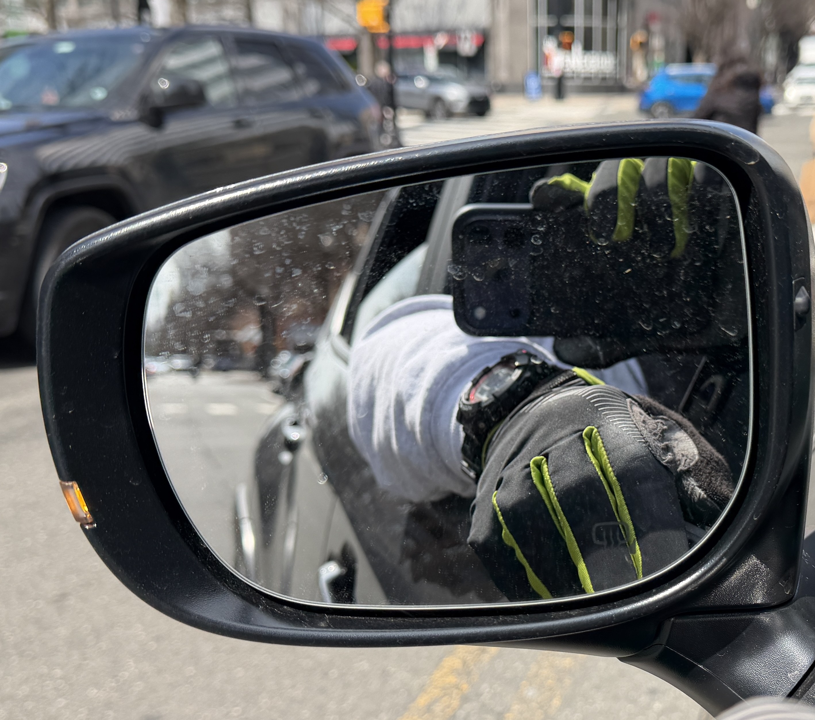 Here’s Brick looking rakish in his Ayo-inspired driving gloves accessorized with a red-trim G-Shock on a red-trim Velcro NATO strap, plus an Old Navy fireproof Kevlar sweatshirt.
