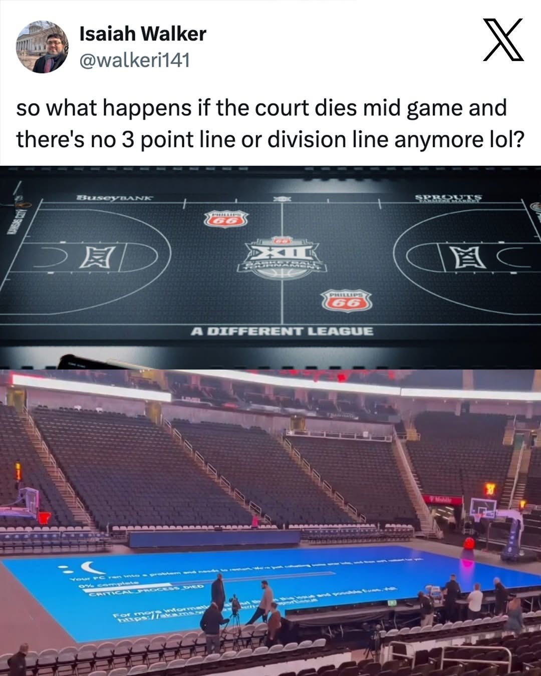 Big 12 Conference robbed us of a perfect meme by chickening out of the LED court: