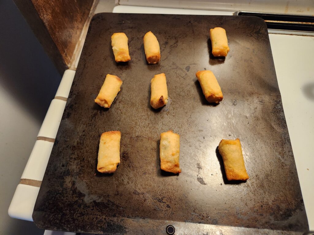 While the shrimp finish better get your egg rolls out of the oven.