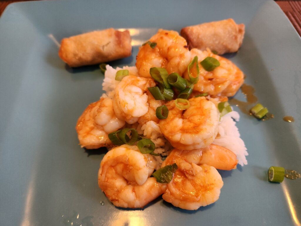 Serve the shrimp over white rice and grab a few egg rolls.