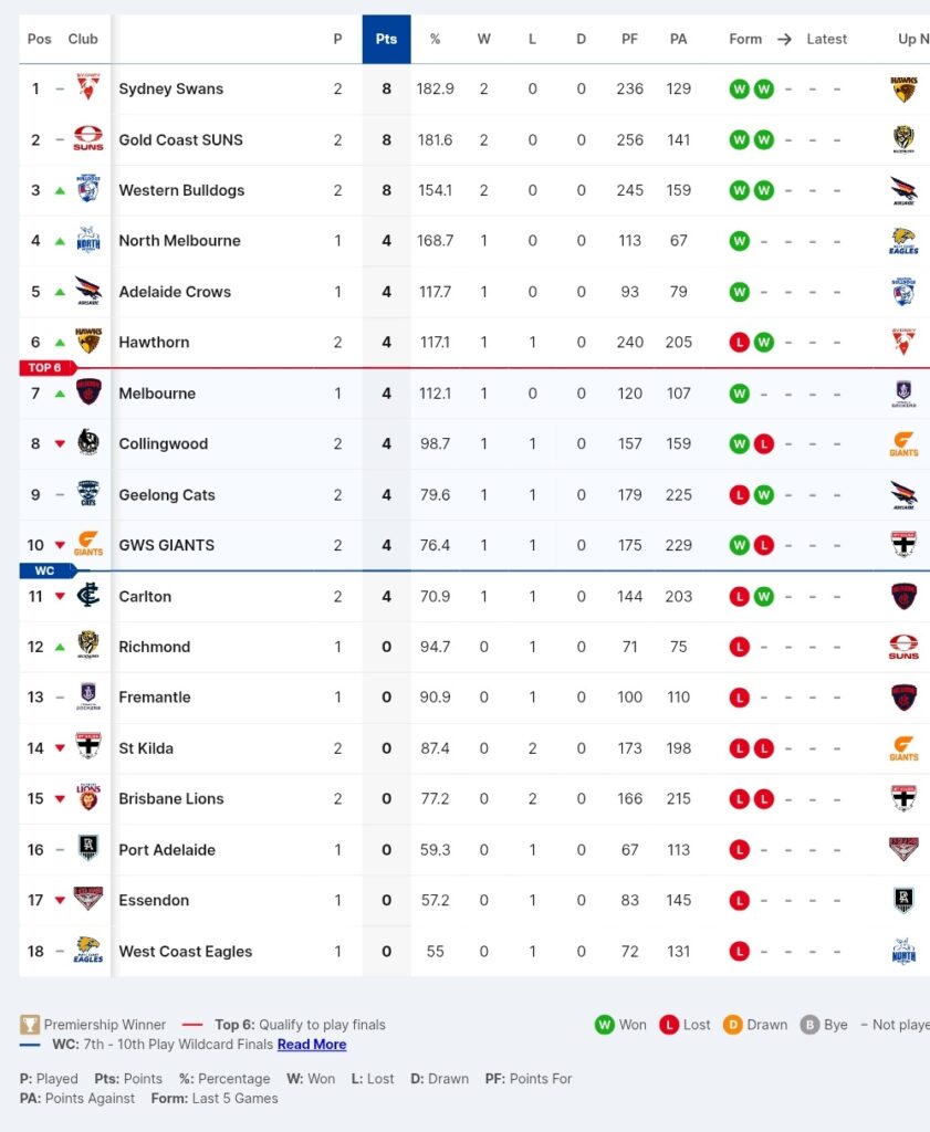 The AFL Ladder
