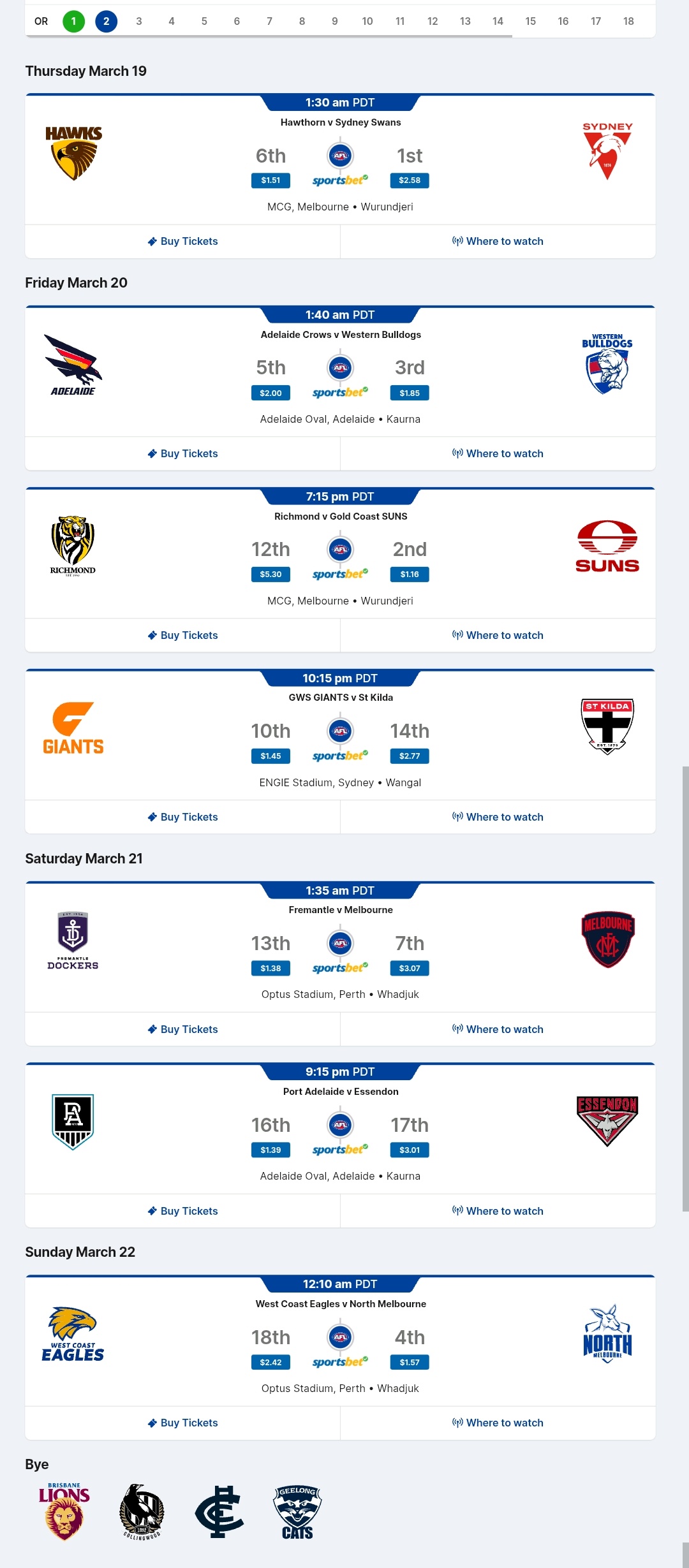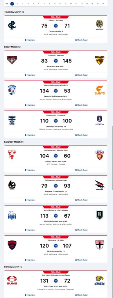 If you are a member of an AFL club or you got a Watch AFL membership, you should be able to watch every AFL and AFLW game, including replays. Game times vary between Australian afternoon and evening, which actually makes it easier for us in North America to watch as the games can be seeing in the evenings on Pacific Time and early mornings on Eastern time.