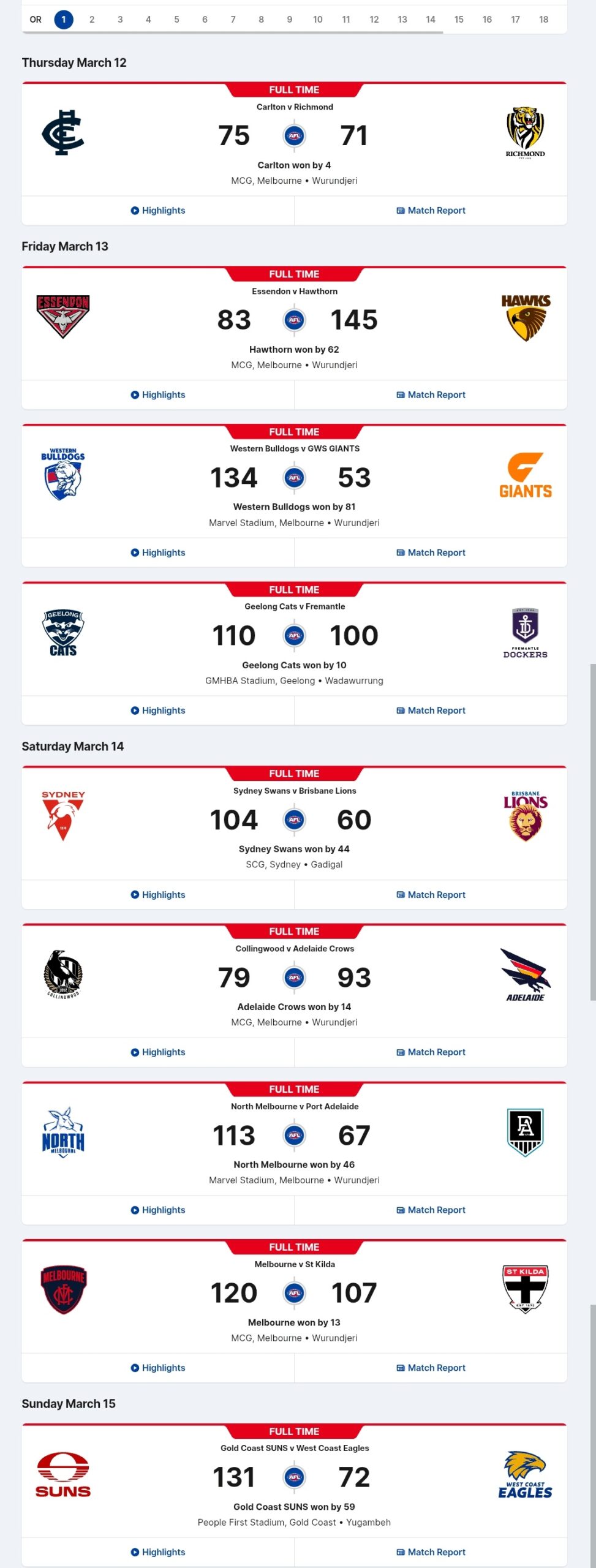 Gold Coast beat the crap out of West Coast as expected, but they have the look of a team that is going places. If they can continue to accumulate points against weak opponents, a Top Four spot is theirs.