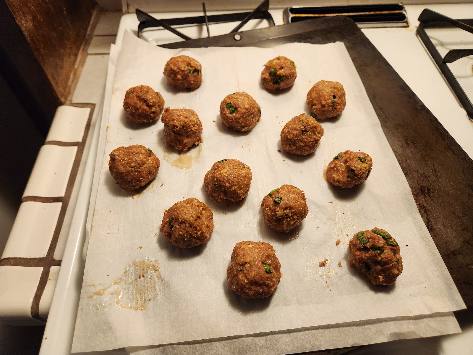 As a “Main” course, youngest right made her famous Honey Sriracha Turkey Meatballs.