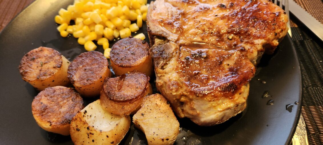 Sunday Gravy with yeah right: Skillet Pork Chops and Fondant Potatoes!